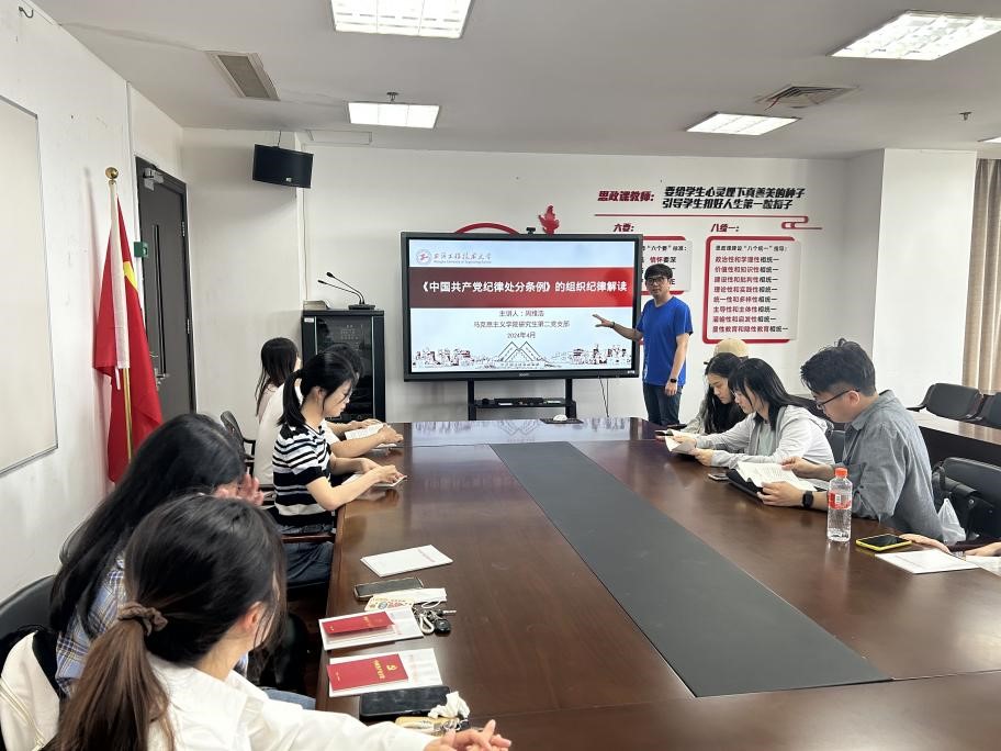为深入开展党纪学习教育,进一步加强党员纪律意识、自我约束能力和免疫能力,2024年5月23日下午,英国365上市公司研究生第二党支部在行政楼1112室,举办了以《中国共产党纪律处分条例》为主题的“党纪学习教育”主题党课。