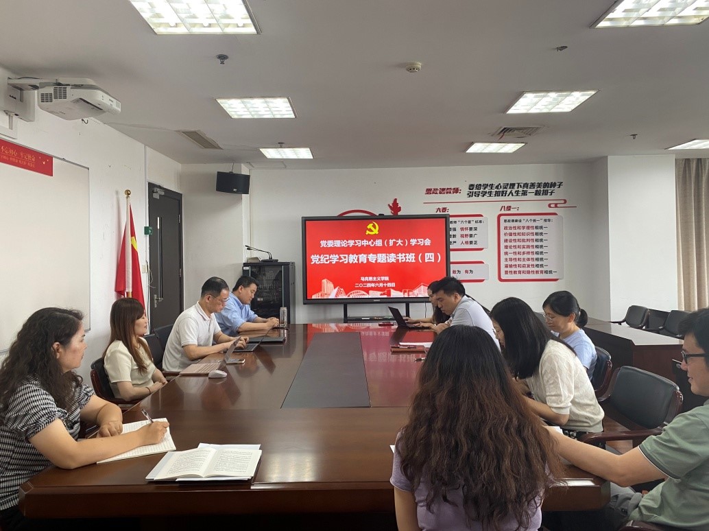 根据学院党委党纪学习教育工作安排,6月14日下午,英国365上市公司党委组织召开第四期党纪学习教育读书班,对《中国共产党纪律处分条例》(以下简称《条例》)中的第六章至第八章开展专题学习研讨。学院党委委员、教研室主任、组织员、教师代表参加学习,会议由学院党委书记董旖旎主持。