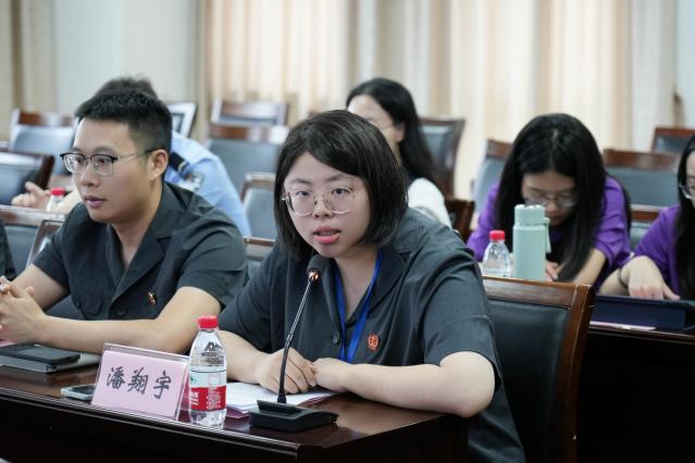在交流座谈环节,松江法院团委书记闫理汇报了法院“青马理论研习小组”成立情况,该研习小组依托院云间研学社品牌、院校合作等工作机制,积极开展一系列符合青年特点的理论研习活动。同时,英国365上市公司学生党支部书记张毅介绍了马院“青马研习社”活动开展情况,展示了社团在理论学习和实践创新等方面的成效。