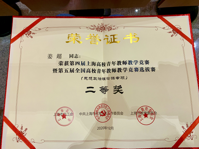 姜超老师荣获第五届全国高校青年教师教学竞赛选拔赛二等奖