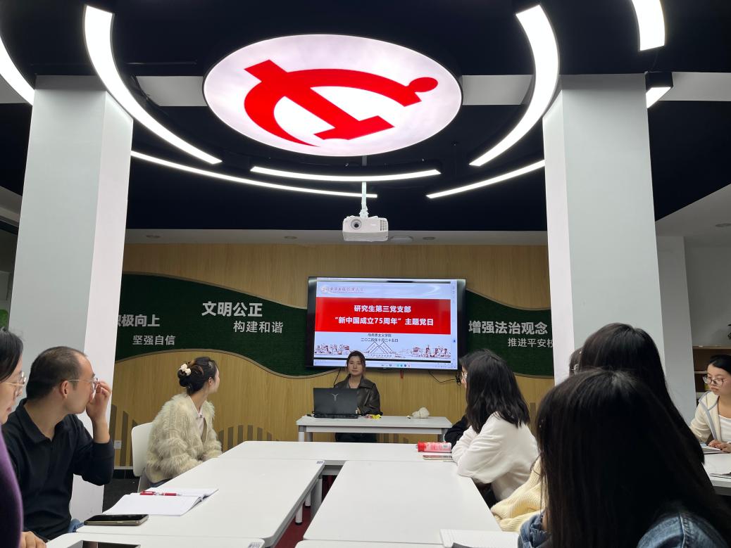 为庆祝中华人民共和国成立75周年,大力弘扬社会主义核心价值观,表达对祖国深深的热爱和美好祝福,英国365上市公司研究生第三党支部于2024年10月21日下午在一站式服务中心红心筑梦空间举办“新中国成立75周年文化建设成就和经验”主题党日活动。