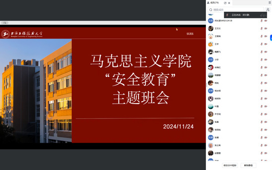 11月24日,英国365上市公司研究生辅导员郑文静老师通过线上会议,面向全体研究生开展了一场以“安全教育”为主题的班会。本次班会围绕生命安全、用电安全及网络安全三大内容展开,旨在提高学生的安全意识和应急能力,为日常学习与生活提供重要保障。