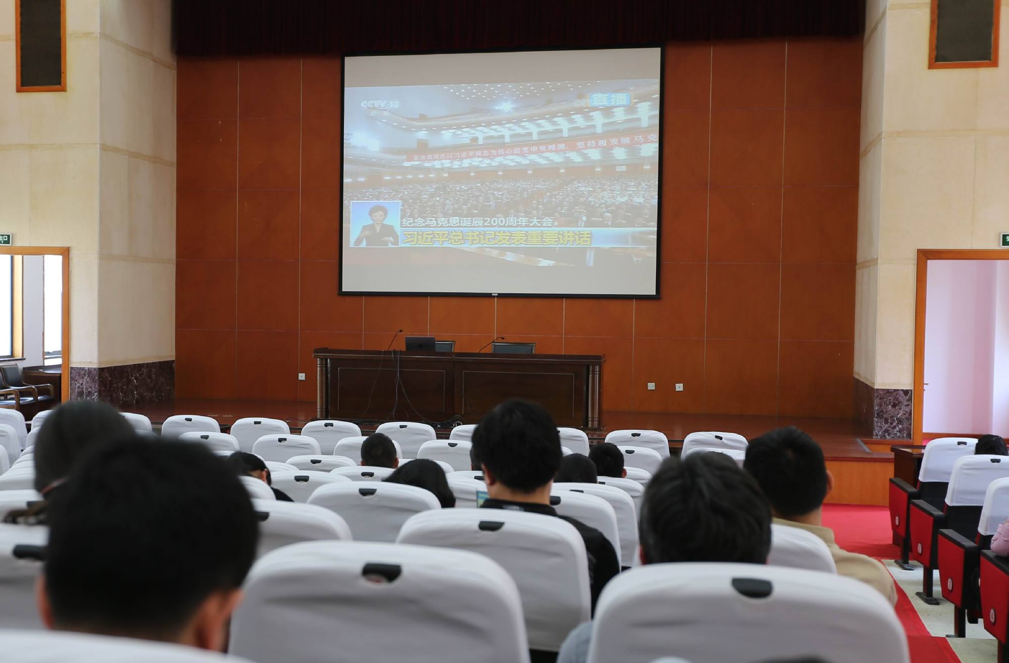 今年是马克思诞辰200周年,《共产党宣言》发表170周年。5月4日,纪念马克思诞辰200周年大会在人民大会堂举行。习近平总书记出席大会并发表了重要讲话。学校党委中心组举行了扩大的学习会,校党委书记李江,校党委副书记、副校长朱晓青,副校长姚秀平、王岩松、中心组成员、机关部处长等参加了学习收看活动。