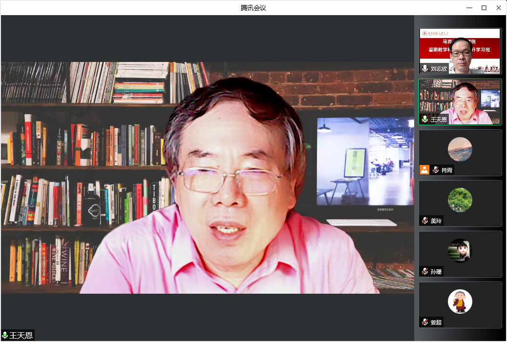 刘志欣院长作讲座总结。他认为,王天恩教授的报告内容丰富、信息量十足,显示了其广博的学识与深厚的学术功底,整场报告极具启发性。随后,王天恩教授就“思想生产的概念层次”“中国式生产思想与思想生产的关系”等话题与在线师生做了进一步的交流探讨,讲座在其乐融融的氛围中圆满结束。