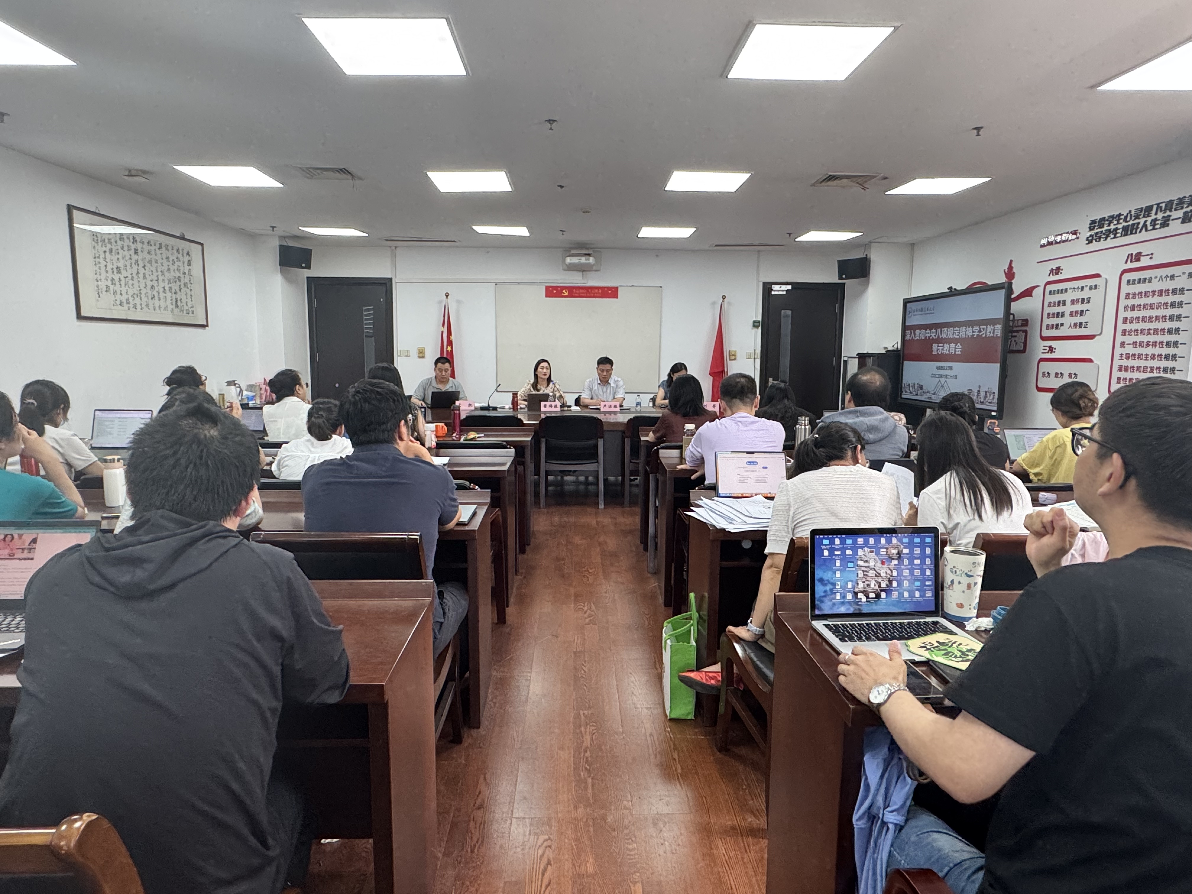 6月26日下午英国365上市公司党委在行政楼1112会议室召开了深入贯彻中央八项规定精神学习教育警示教育会。学院党政领导班子成员、全体科(职)级干部、党支部书记、关键岗位人员及教师共同参与了此次会议,会议由学院党委书记董旖旎主持。
