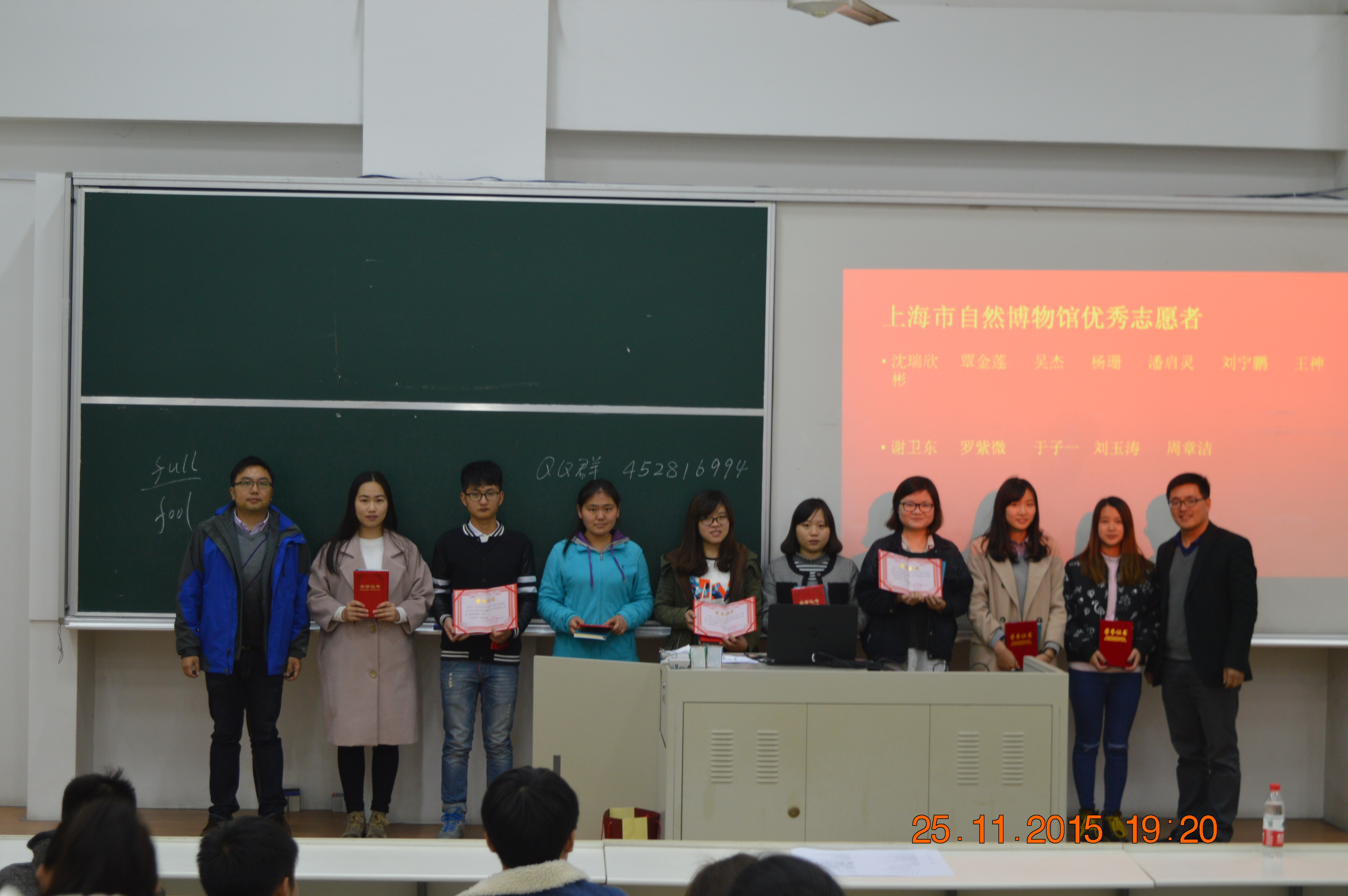 2015年11月26日晚七点,社会科学学院2014—2015学年志愿者表彰大会暨交通安全讲座在教学楼F120教室隆重举行,学院分团委张强老师,全体大一新生、松江区交通执法大队团委书记及团委主要人员纷纷出席大会。