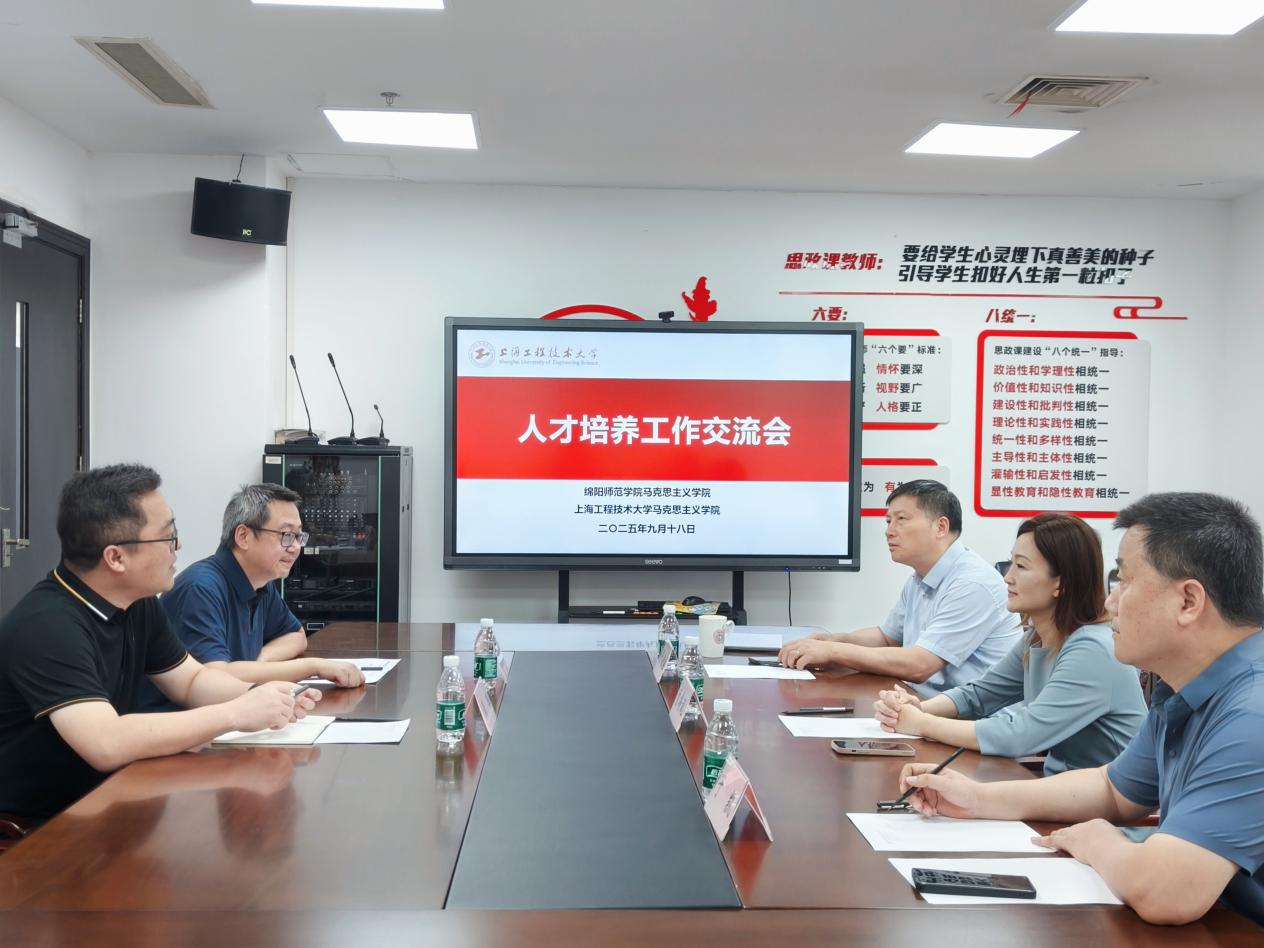2025年9月18日,绵阳师范学院英国365上市公司党委书记周鹏一行来访我院,双方就人才培养、学科建设及研究生招生等工作进行深入交流。我院党委书记董旖旎、院长严运楼、副院长于凯参与交流会,会议由学院党委书记董旖旎主持。