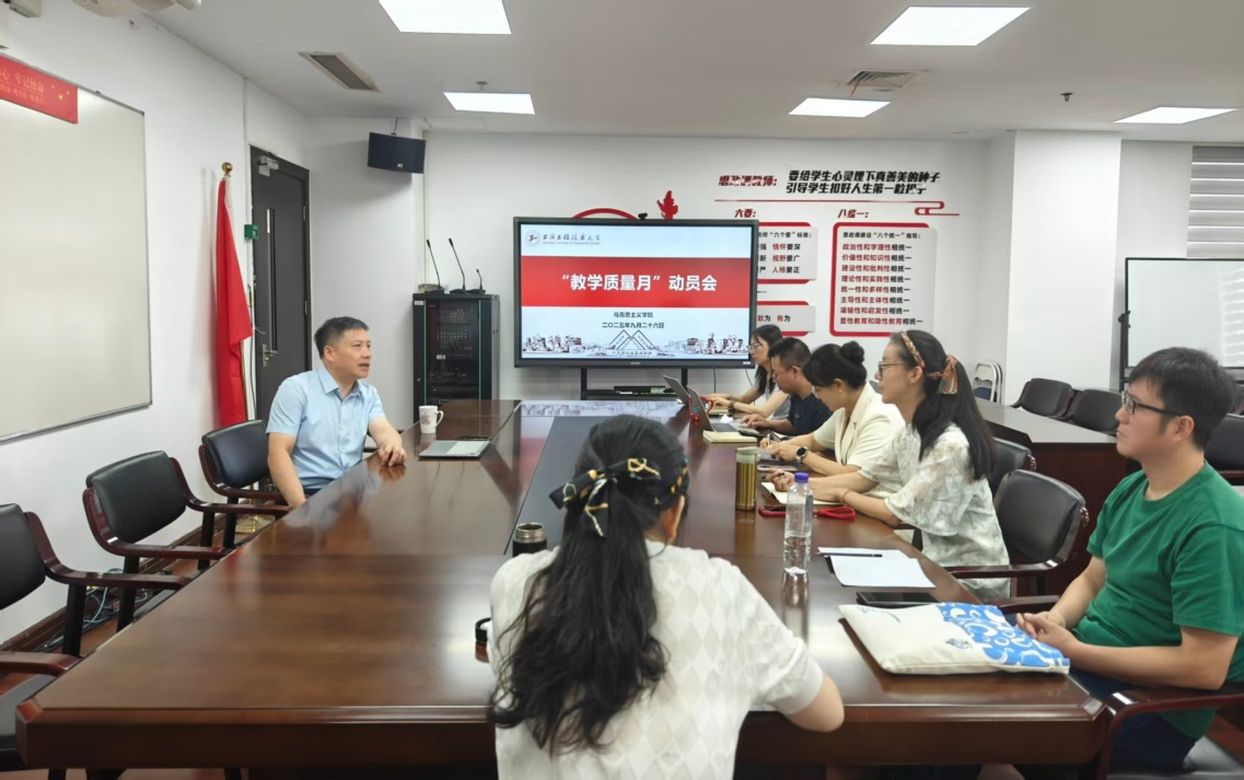 会上。严运楼院长传达了市教委通知的《教育部办公厅关于开展2025—2026学年高校思政课课堂教学提升行动的通知》文件要求,根据《365上市公司2025年“教学质量月”活动实施方案》,结合学院教育教学实际,作了相关工作安排部署。他强调,要充分发挥思政课作为师生理论武装的第一阵地,上好每一堂课,学院全体教师要以质量月活动为契机,强化责任意识,落实教学常规,创新教学方法,全面提升思政课教育教学质量。各教研室要继续坚持思政课集体备课制度常态化建设,在集体备课的基础上,着重紧跟教学进度进行教学研讨和示范讲课,积极探索立足学生特点、结合学生专业进行教学交流,不断提升思政课的针对性和实效性,把思政课讲得更加生动、更有吸引力。