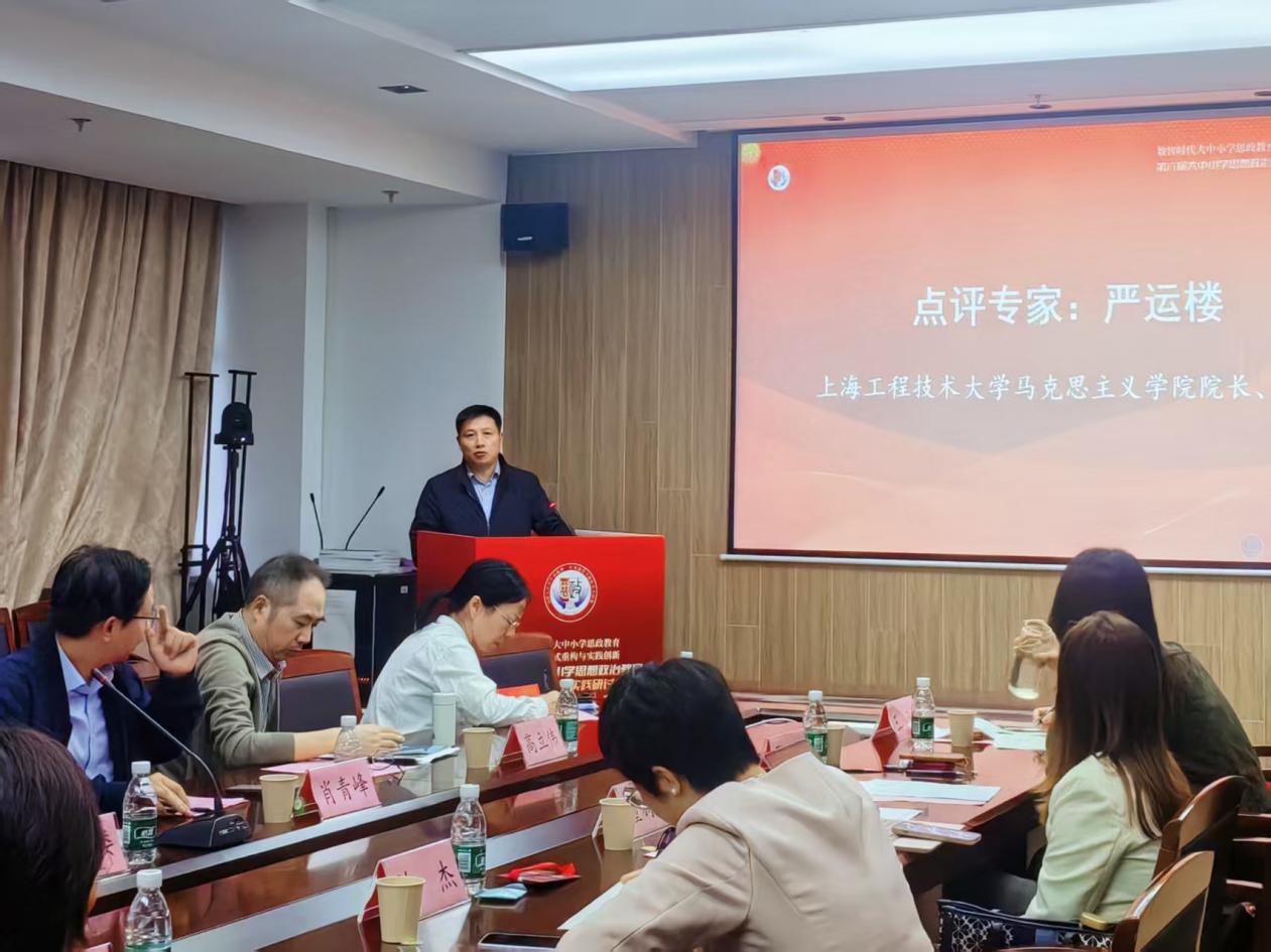 严运楼院长作为点评专家,对分论坛四的研讨情况作了精彩点评。他高度肯定了与会代表发言的理论高度、实践深度与创新锐度,认为分论坛选题呈现出全域覆盖、传统与现代贯通、理论与实践结合的三维共振特征,各位专家的观点彰显鲜明个性,提出的策略兼具系统性、实践性与适配性。同时,严运楼院长结合研讨内容提出三点思考:一是要进一步深化协同机制设计,强化各主体间的联动效能;二是要推动数字赋能在思政教育中的落地见效,避免技术应用流于形式;三是要细化思政教师专业能力标准,为教师队伍建设提供明确指引。