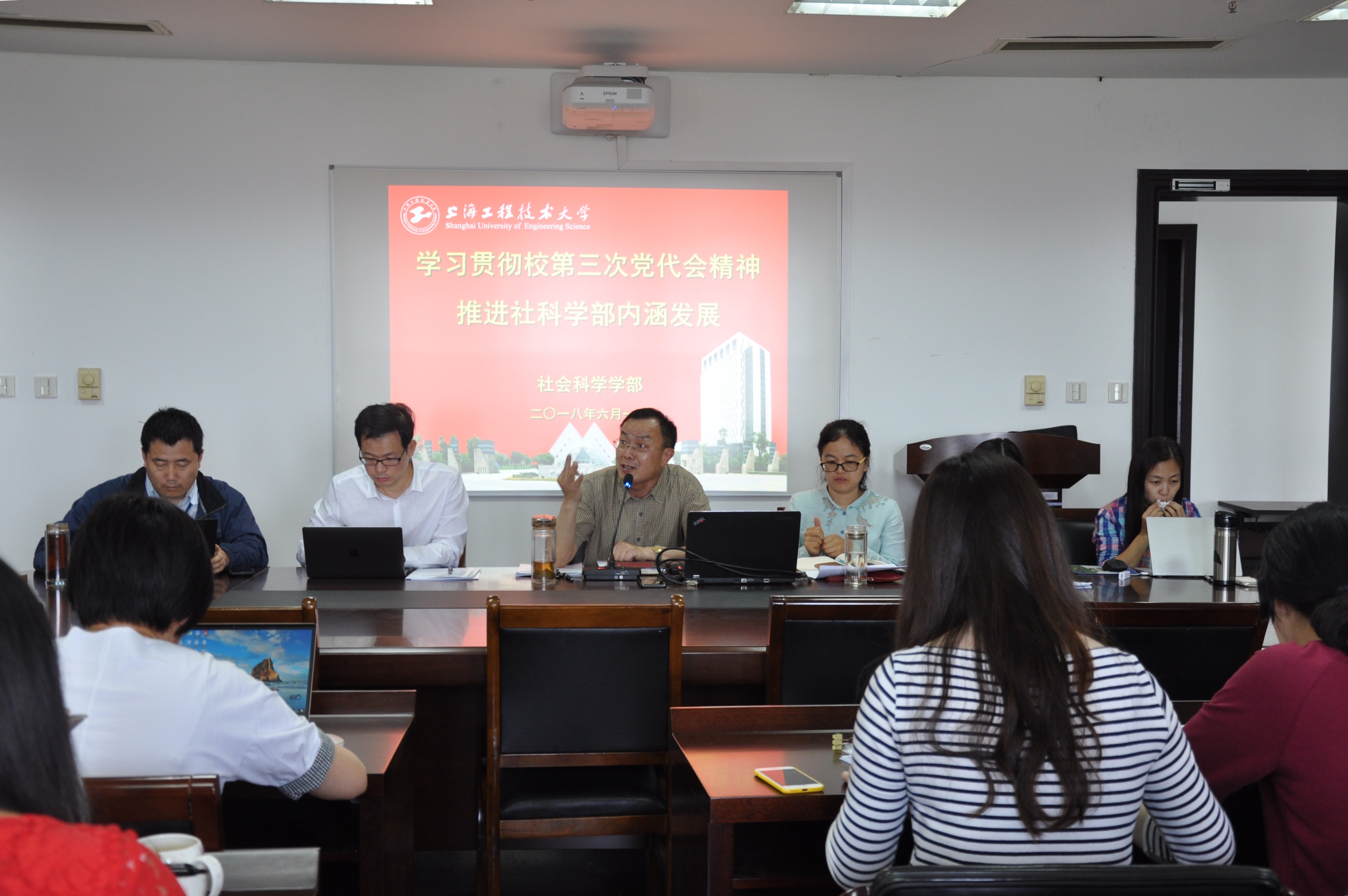 6月1日上午,社会科学学部党总支在行政楼812会议室召集学院教师代表集中学习了学校第三次党代会精神,社会科学学部党政领导和全体教师参加了此次学习会。