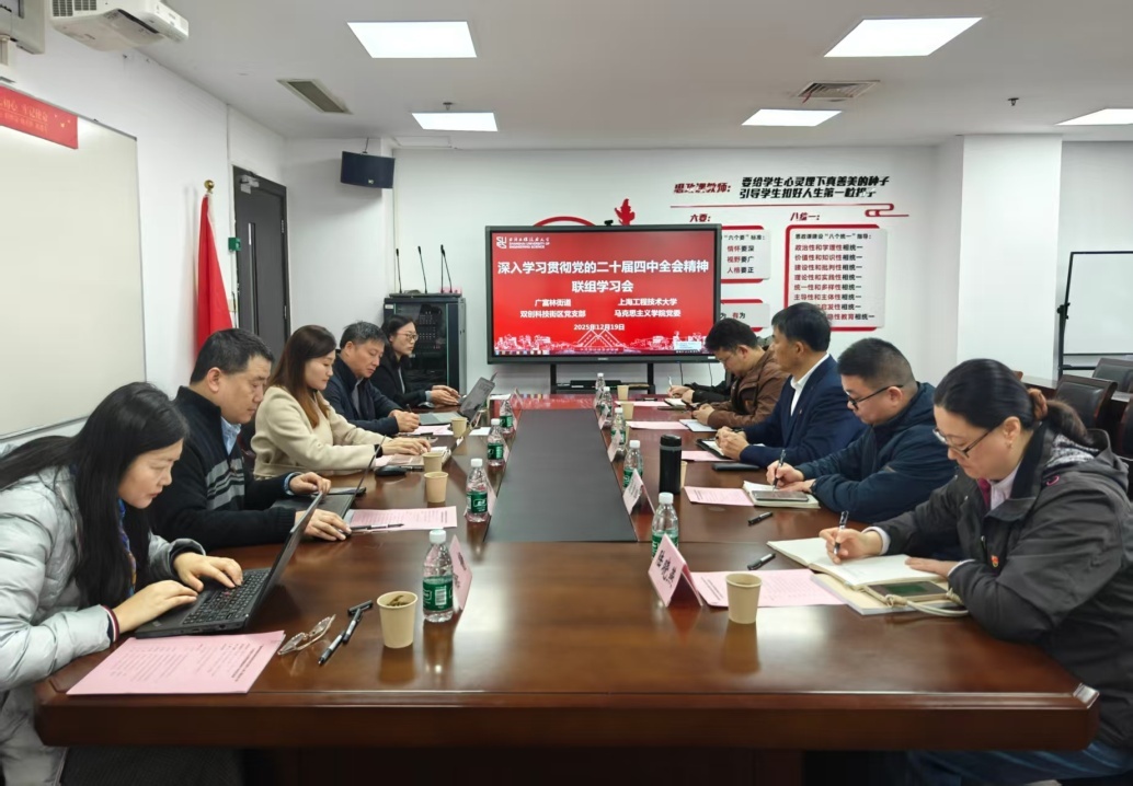 为深入学习贯彻党的二十届四中全会精神,推动理论学习与基层实践同频共振,12月19日上午,英国365上市公司党委与广富林街道双创科技街区党支部在行政楼1112会议室举办了专题联组学习会,双方党员干部及党员代表参加会议。会议由学院党委书记董旖旎主持。