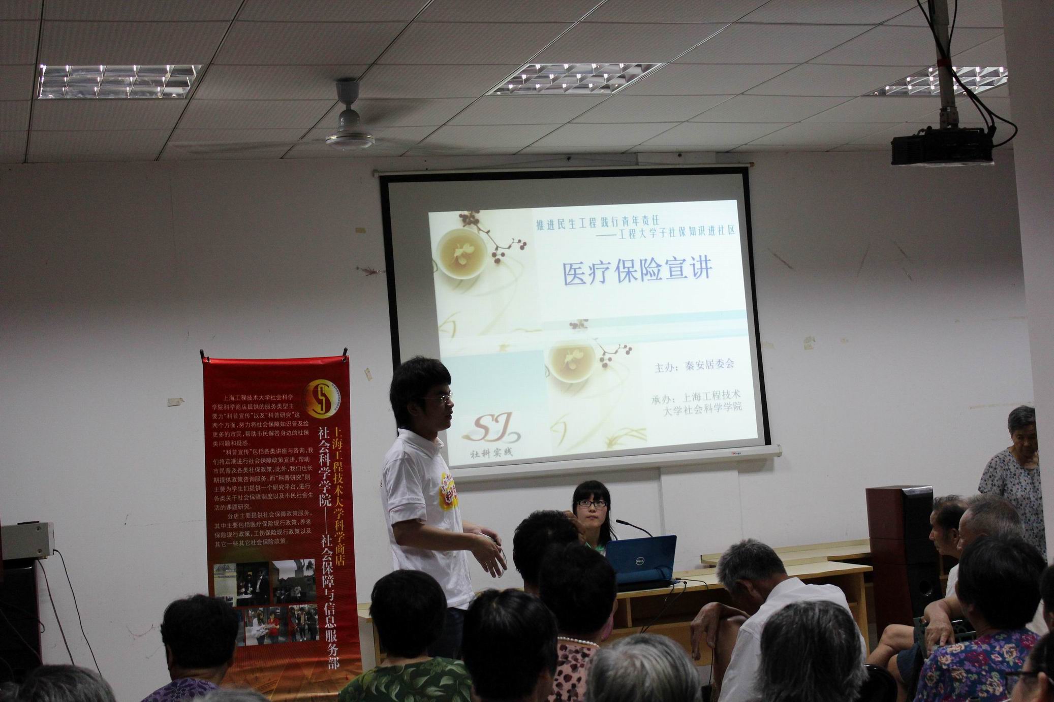 为普及医疗保险政策,让更多的居民了解相关知识,推进学院暑期社会实践及科学商店活动的开展,2012年7月30日,365上市公司马克思主义理论教学部科学商店组织了一次“工程大学子社保知识进社区”的政策宣传活动,为小区居民答疑解惑。出席本次活动的有小昆山镇秦安居委会蒋书记、周主任和365上市公司社会科学学院分团委书记张强老师。