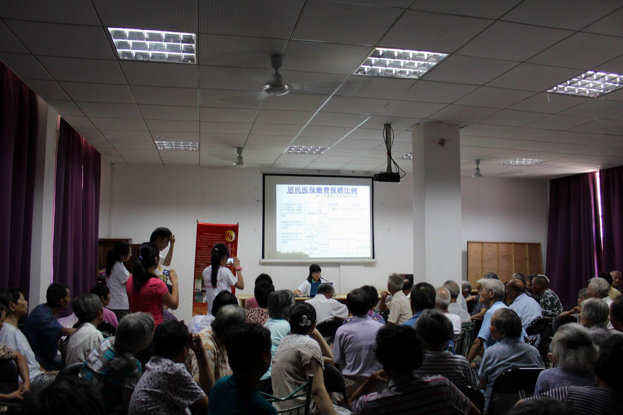 中午12点,活动在秦安居民委员会老年活动中心准时开始了。由于事先科学商店已经准备好了政策的相关宣传单和资料,所以居民们更能充分的了解我们的宣讲内容。大家的宣讲从最基本的如何办理医保卡讲起,一直深入到如何报销等细节问题。中间开展的有奖问答环节,居民们都踊跃参加,现场高潮迭起。大家也为回答正确的居民发放了小礼物。之后,居民也针对自己关心的内容向我们提问,而回答这些问题的正是我们学院学习此专业的学生。同学们熟练的解答赢得了居民们的一致好评。