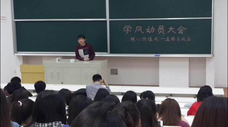 听了学长们的发言,大一同学们报以热烈的掌声。本次考前学风动员大会,鼓舞了同学们的信心,加强了同学们对社会主义核心价值观的认识,取得了良好的效果。