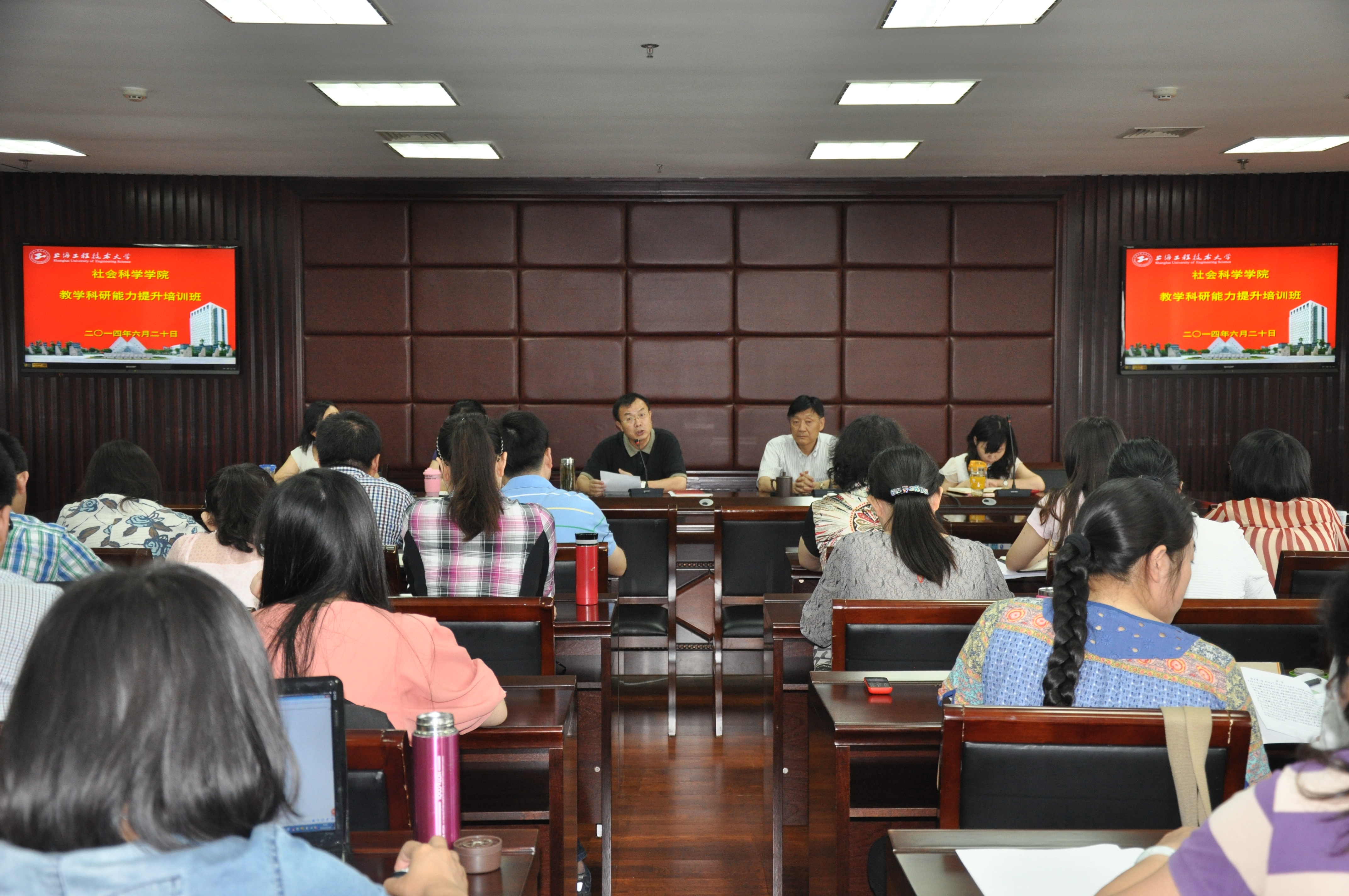 6月20日上午,社会科学学院在行政楼506举行了2014年暑期教师教学科研能力提升培训班的开班仪式,社会科学学院全体教职工出席会议。