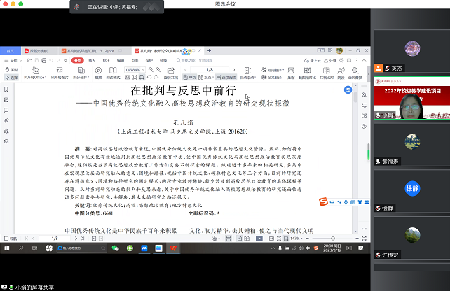 为严格把控教学建设项目建设情况,保障项目建设质量,学院于3月12日下午召开2022年校级教学建设项目结题评审会。学院全部教学建设项目负责人参加了此次结题评审会,上海师范大学黄福寿教授、学院许传宏教授担任评审专家。