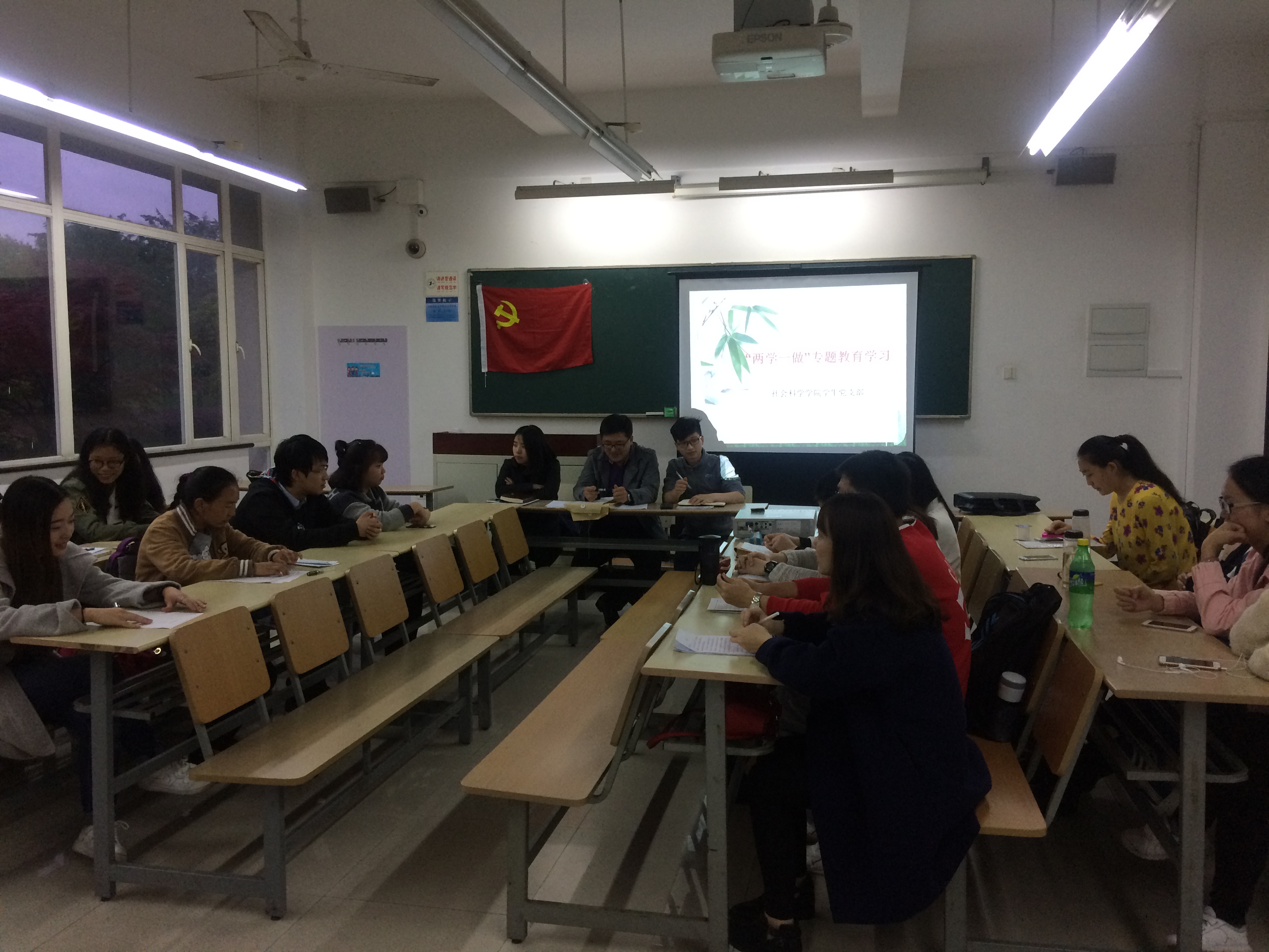为深入学习贯彻习近平总书记系列重要讲话精神,推动全面从严治党向基层延伸,巩固拓展党的群众路线教育实践活动和“三严三实”专题教育成果。党中央决定,2016年在全体党员中开展“两学一做”。为响应党中央号召,于4月20日下午,社科学院学生党支部以“两学一做”为中心的组织生活顺利召开,与会成员有社科学院组织员张强老师,支部书记周淑芬老师和全体社科学生党支部成员。会议由学生党支部副书记谢卫东同学主持。 首先,谢卫东同学向所有学生党员介绍了“两学一做”的开展背景以及何谓“两学一做”。“两学一做”,基础在学,关键在做。学好党章党规、学好习近平总书记系列重要讲话是做一名合格党员的前提。 在“两学一做”学习教育中,全体党员要实现4个“进一步”:即进一步坚定理想信念,提高党性觉悟;进一步增强政治意识、大局意识、核心意识、看齐意识,坚定正确政治方向;进一步树立清风正气,严守政治纪律和政治规矩;进一步强化宗旨观念,勇于担当作为,在工作、学习和社会生活中起先锋模范作用。要着力解决五个问题:即着力解决一些党员理想信念模糊动摇的问题,着力解决一些党员党的意识淡化的问题,着力解决一些党员宗旨观念淡薄的问题,着力解决一些党员精神不振的问题,着力解决一些党员道德行为不端的问题。 在会议过程中,全体学生党员积极探讨,如何切实掌握“两学一做”。大四党员单梦成表示,作为一名学生党员,首先需要坚定信念,把共产主义信念作为始终高扬的光辉旗帜;其次要端正态度,永葆学生党员优秀本色;在学院起到积极引领作用,带领全院同学一齐学习并坚定马克思主义的科学信仰,主动用党性武装自己的思想,树立共产主义的远大目标,并以此来激励自己努力学习、生活和工作,做社会主义事业的积极实践者和人民群众利益的坚定拥护者。 会议最后张老师对全体学生党员提出希冀,作为一名学生党员要高度重视,从实质上把握学习的总体要求,把开展“两学一做”学习教育与学校发展各项工作结合起来,在思考中践行,进一步改进工作。他要求各党小组有针对性地组织学习,提升学习效果,真正把“两学一做”学习教育变成每个党员的自觉行动,变成推动和改进社科学院各项工作的载体。