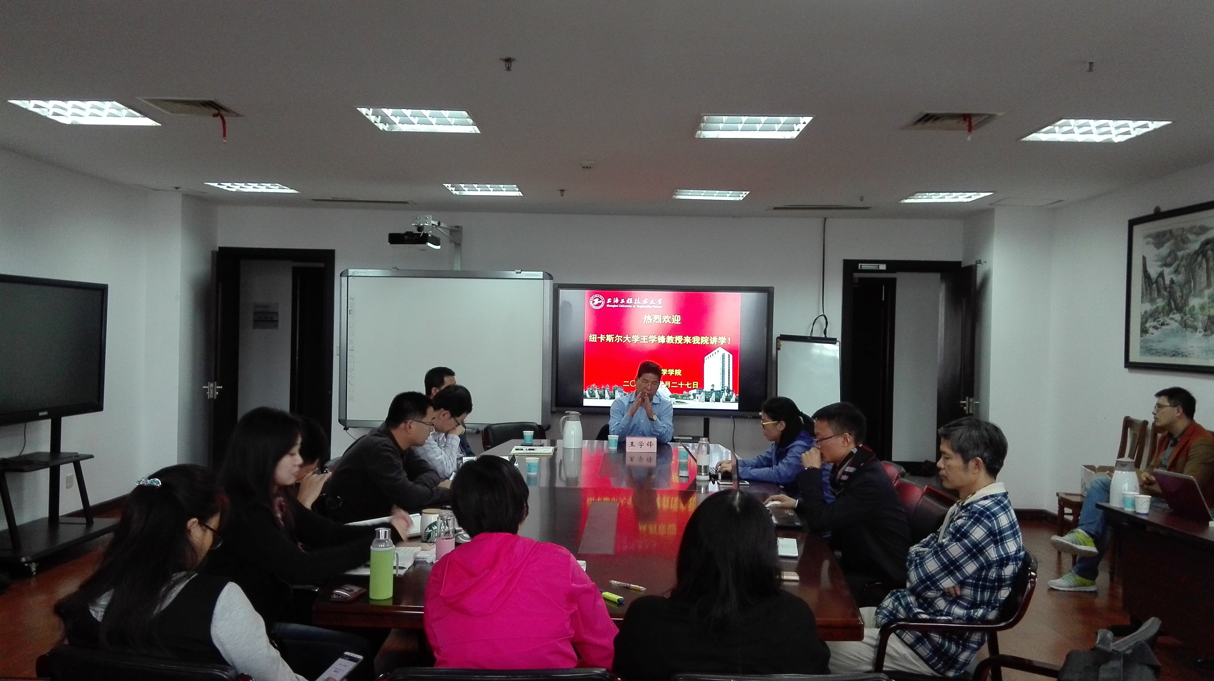 2016年10月28日,来自于纽卡斯尔大学的王学锋教授在社会科学学院举办了名为“国外特大型城市治理研究动态”的主题讲座,社会科学学院院长刘志欣主持讲座,张健明教授参加并点评讲座。社会科学学院的全体教师及其他学院对相关研究领域抱有兴趣的多位教师、同学、研究生参加了讲座。